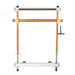Les montants supérieurs et inférieurs sont en aluminium anodisé ; les barres latérales sont en acier et en cuivre ; les clips en bois sont en érable.