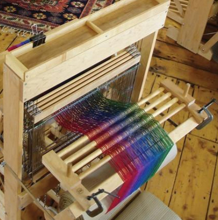 Remarque : le dispositif de tension est conçu pour ourdir de l'avant vers l'arrière. Le dispositif de tension se compose de : 4 barres en bois, 2 supports en bois, 2 pinces et un mode d'emploi. Ils sont disponibles pour s'adapter à n'importe lequel de nos métiers à tisser standard.