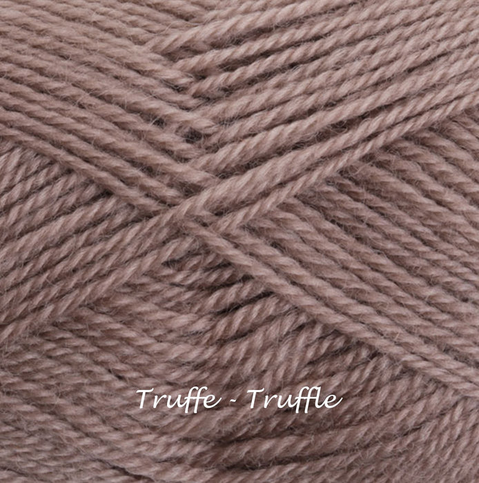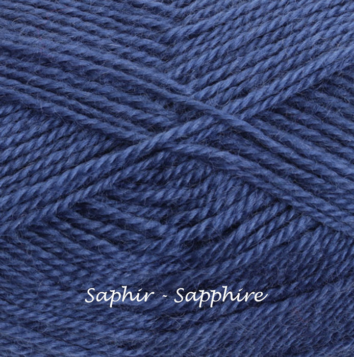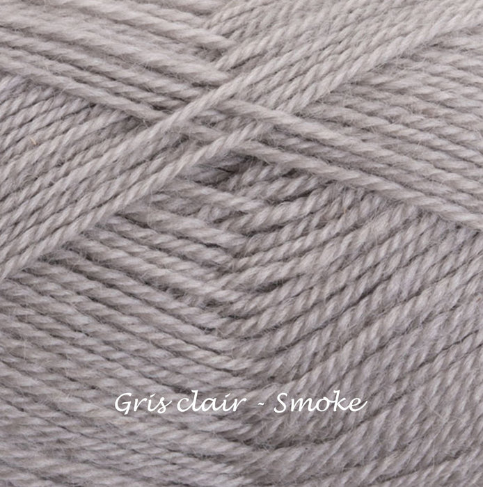 Un fil doux, traditionnel, de grosseur DK, 3 brins pour donner une belle définition des points et une grande durabilité.