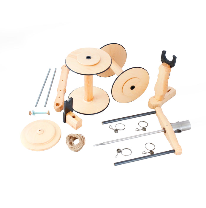 This kit comes with a Jumbo Flyer & Jumbo Bobbin. The Jumbo Whorl that is included in this kit allows 4 and 6 :1 ratios. Also, included are 4 Jumbo sliding hooks, a tension spring set, and a small allen wrench.