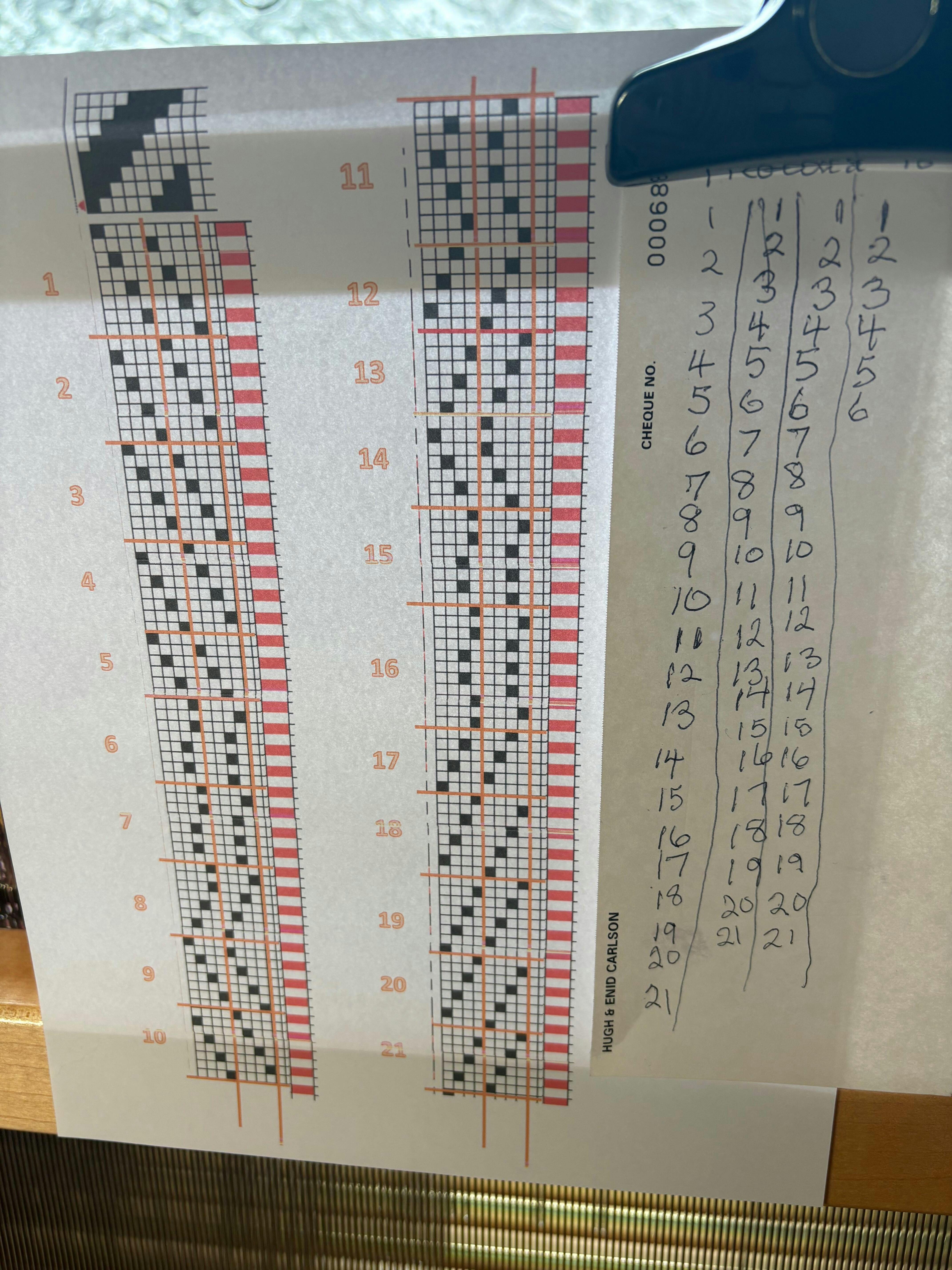 This pattern is recommended for weavers who are comfortable working on shaft looms and want to explore colour-and-weave structures across multiple shafts.