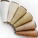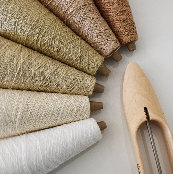 All samplers come with 6 cones of 1.5 oz; one of each natural white, dark brown, light brown, dark green, light green and bleached white yarns. Each cone contains approximately 400 yards of yarn.