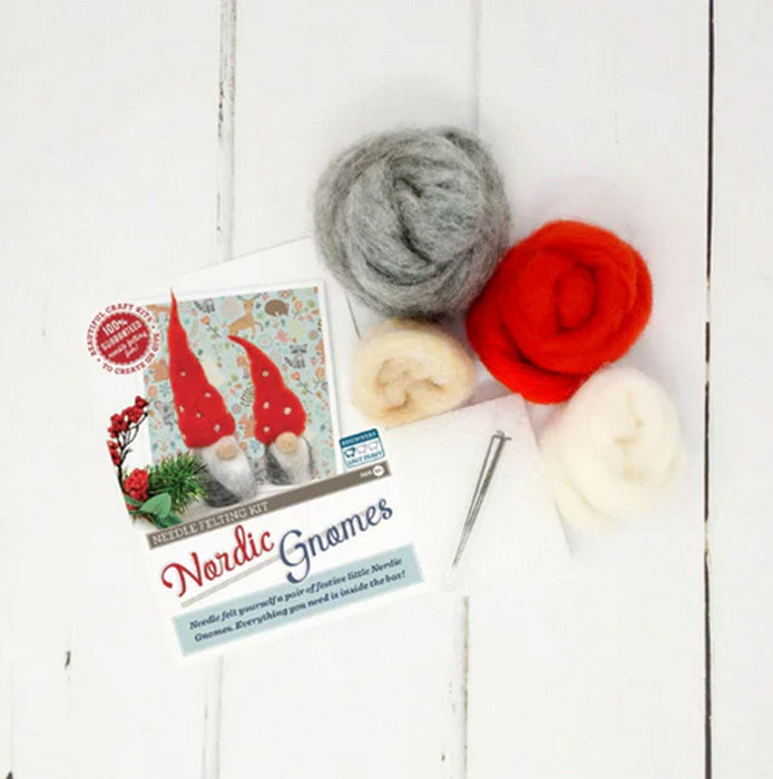 Your Nordic Gnomes Needle Felting Craft Kit contains: 100% Corriedale wool, felting needles, a recycled foam mat to work on, full colour instructions.