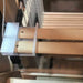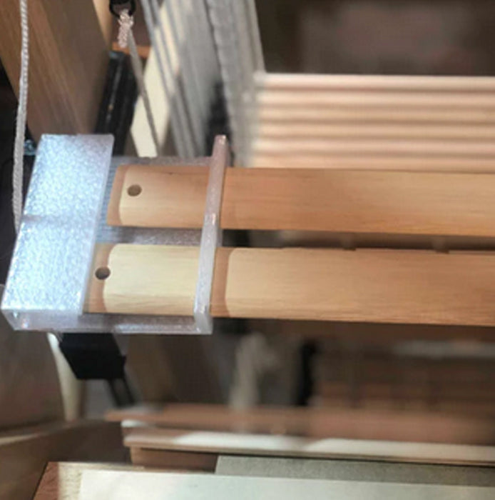 Une fois la chaîne enroulée sur l'ensouple arrière, ce petit support très pratique maintient les baguettes d'encroix dans une position proche des lisses ce qui facilite l'enfilage.