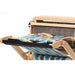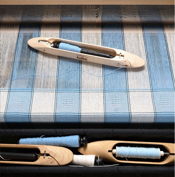 Il est assez large pour contenir les navettes, le crochet d'enfilage, les bobines et les ciseaux, sans interfèrer avec le tissage.